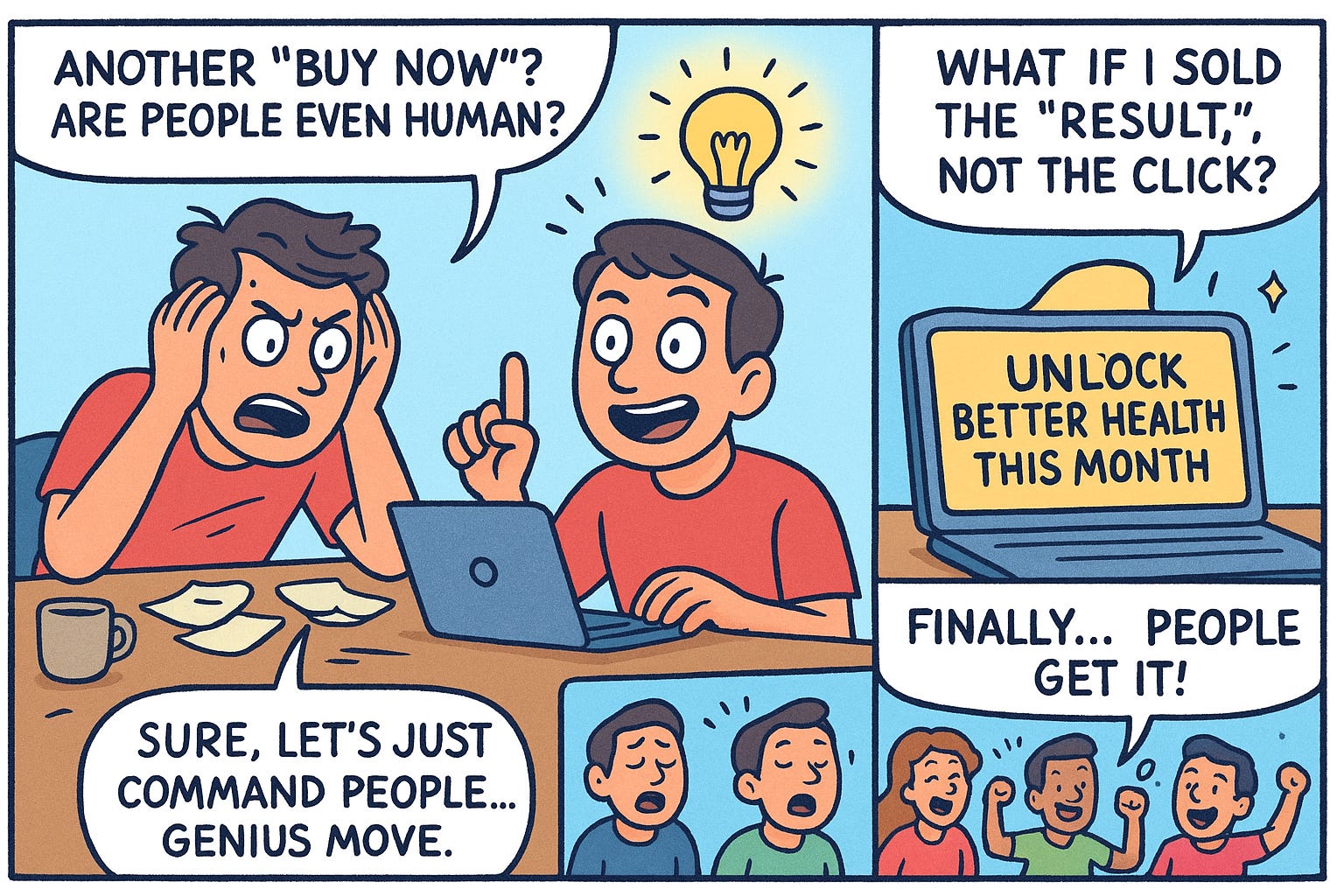 “Buy now,” “Sign up,” “Join today”… they’re empty commands that ask for action, not results.