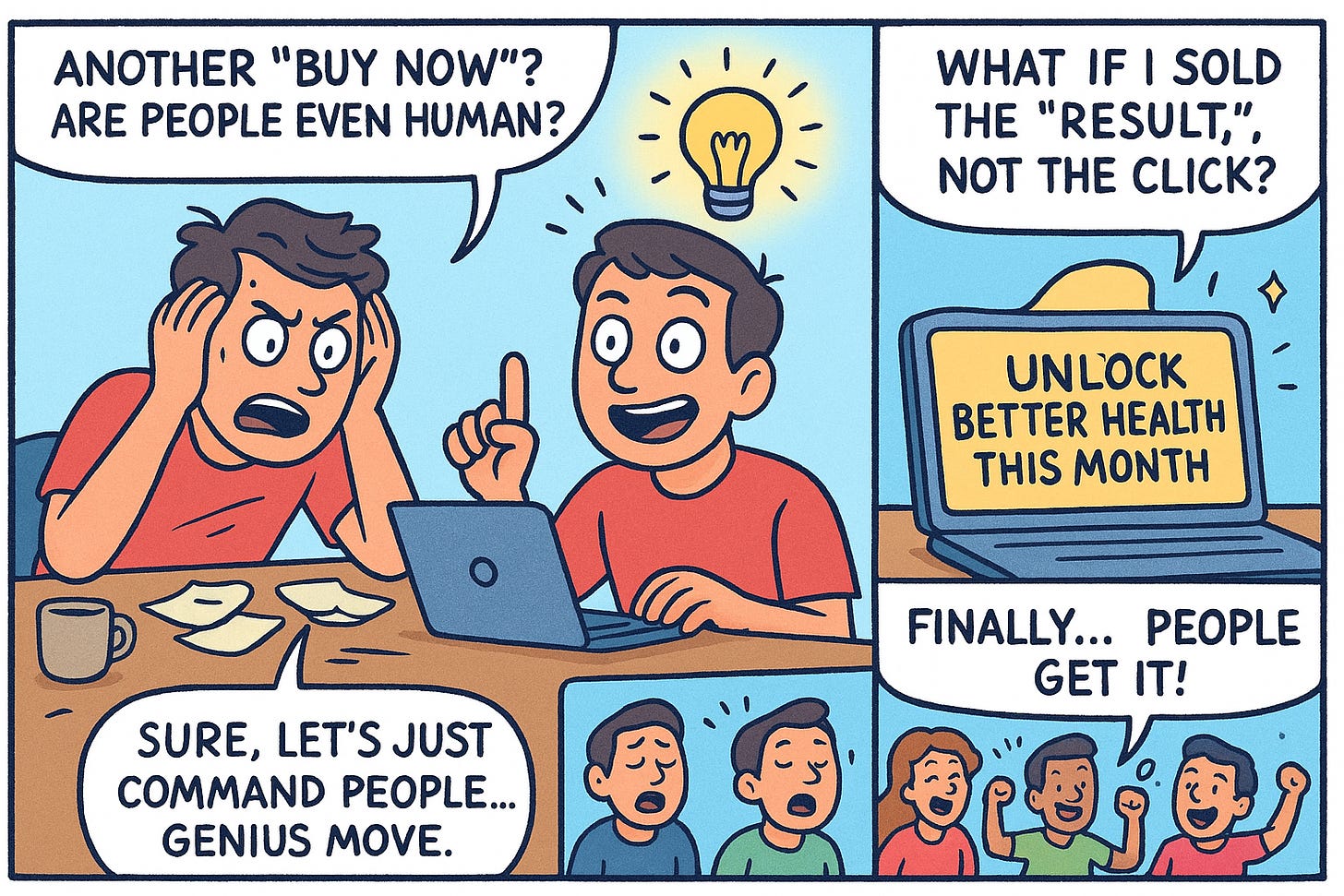 People don’t buy actions, they buy outcomes.