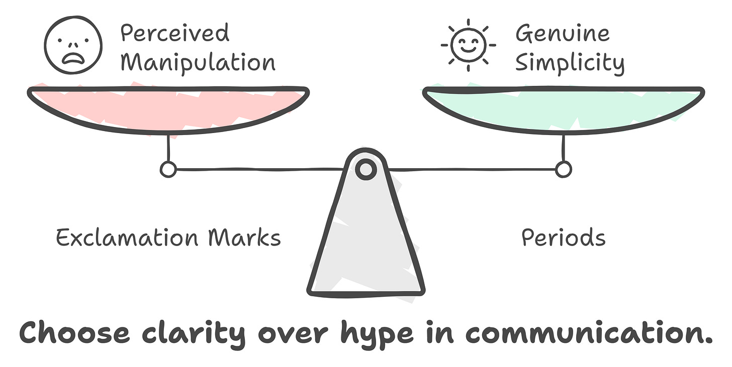 “If your message is strong, you don’t need to shout. A simple period works better."